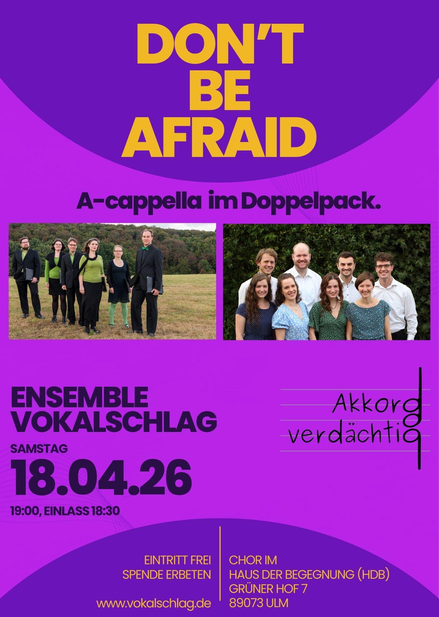 Willkommen bei Akkordverdächtig, einem achtstimmigen Vokalensemble aus Ulm.